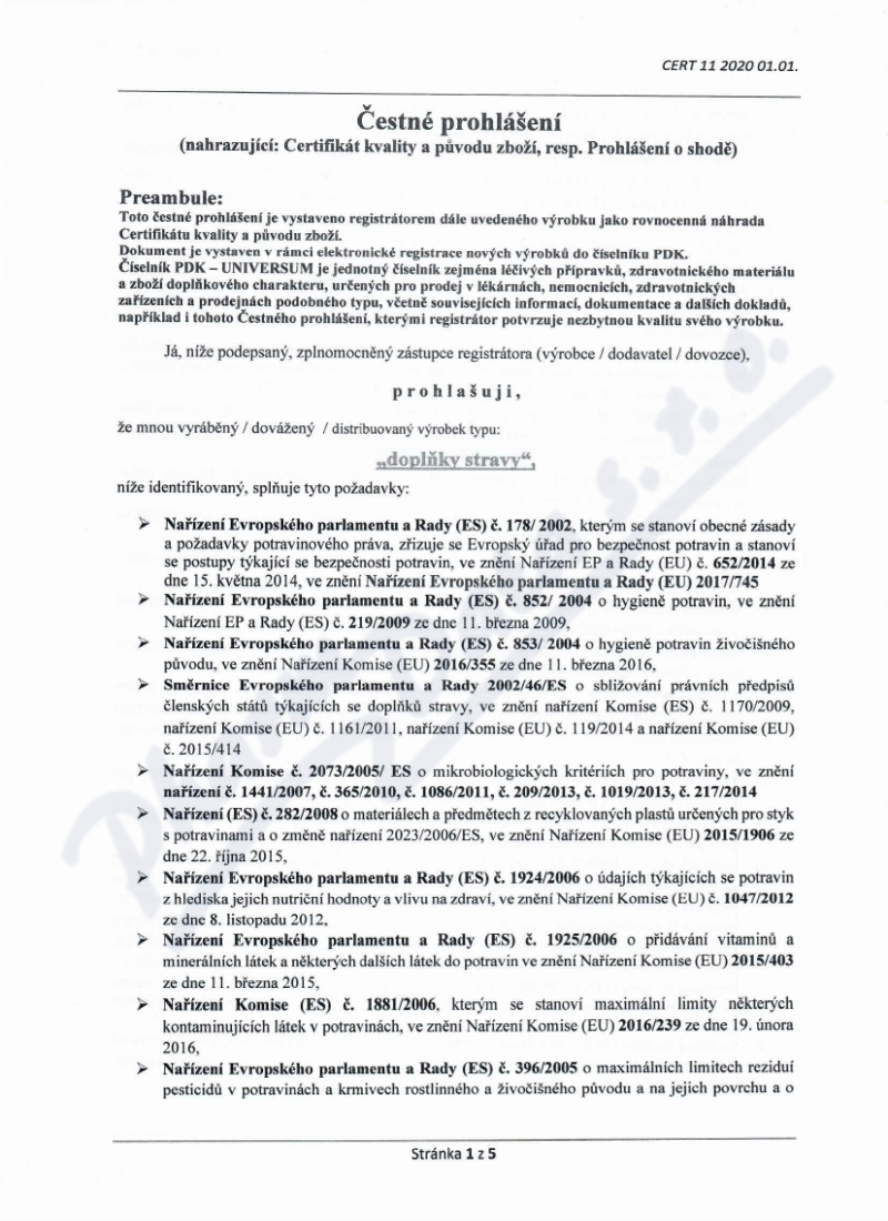 5 strany čestného prohlášení: strana 1, strana 2, strana 3, strana 4, strana 5,