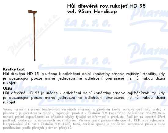 Hůl dřevěná rov.rukojeť HD 95 vel. 95cm Handicap
