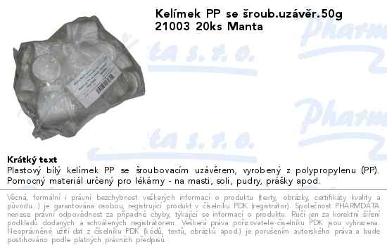 Kelímek PP se šroub.uzávěr.50g 21003 20ks Manta