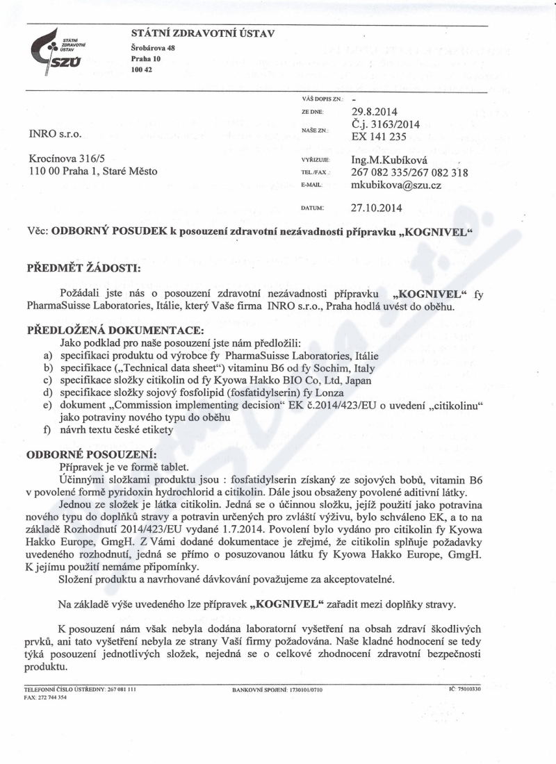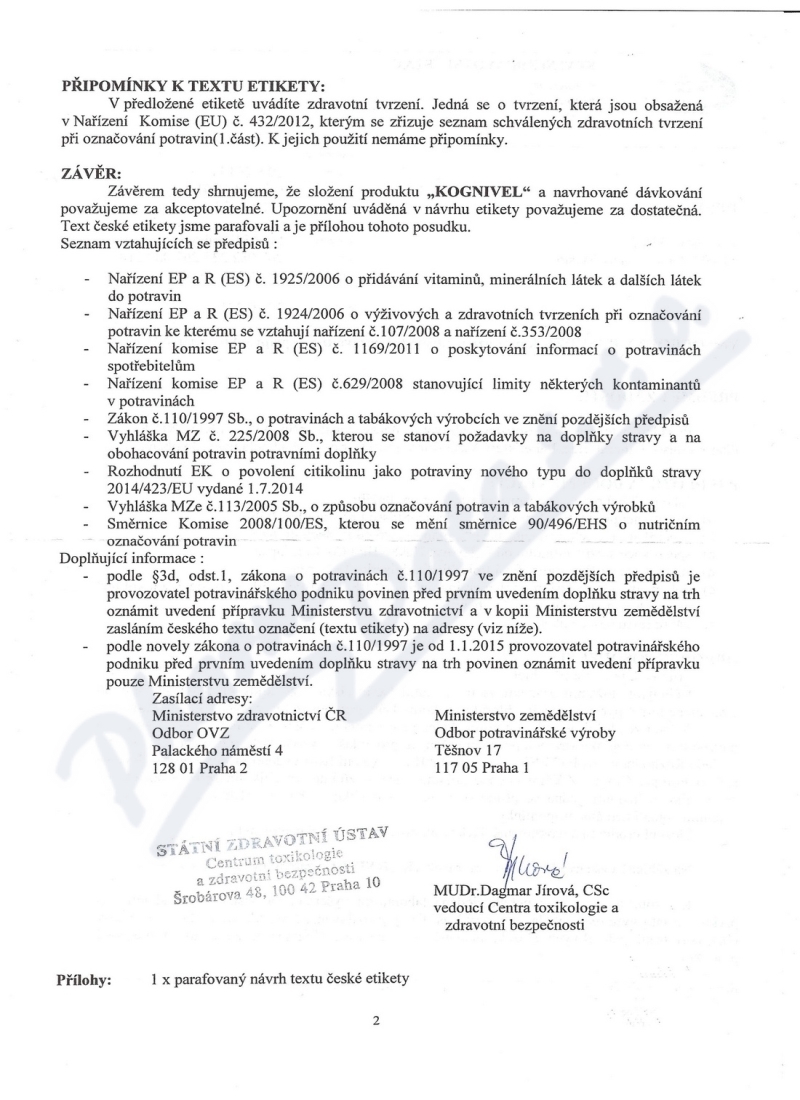 3 strany osvědčení hlavního hygienika: strana 1, strana 2, strana 3,