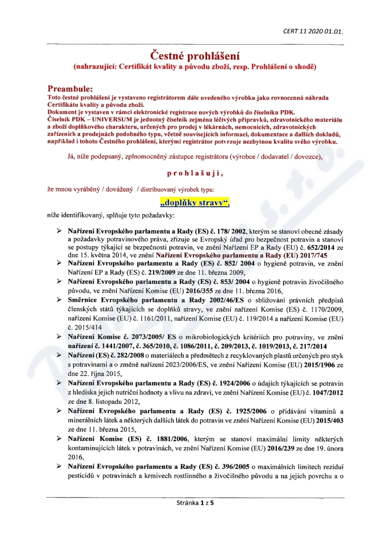 5 strany čestného prohlášení: strana 1, strana 2, strana 3, strana 4, strana 5,