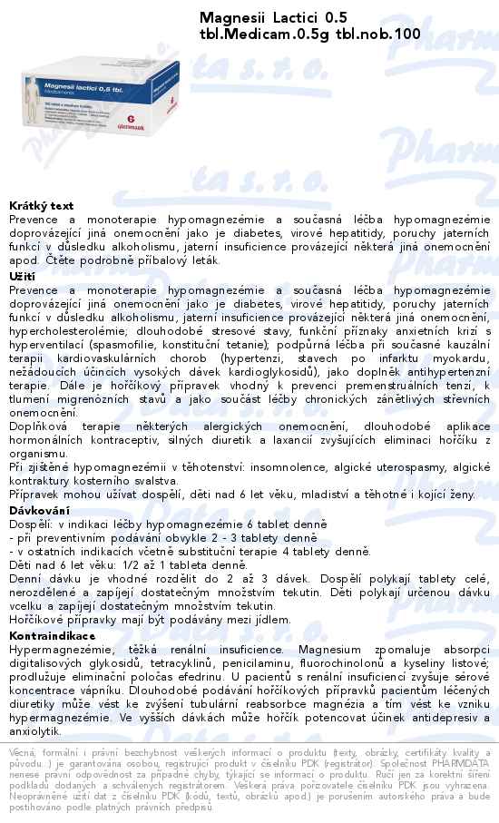 Magnesii Lactici 0.5 tbl.Medicam.0.5g tbl.nob.100