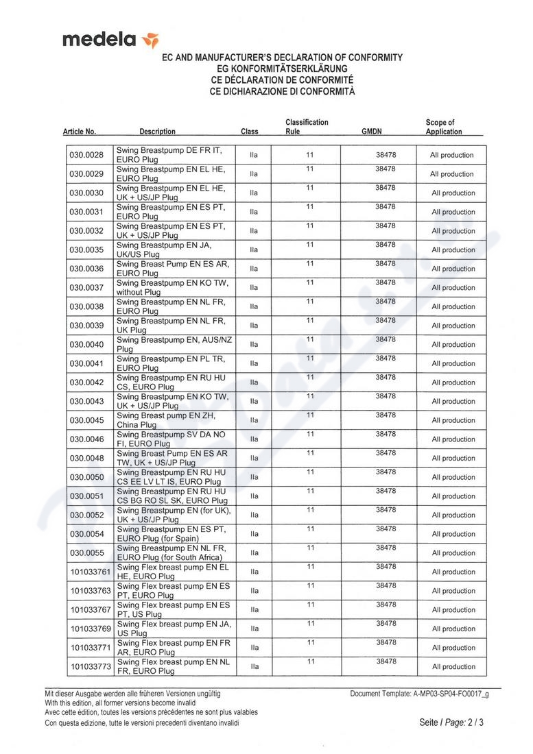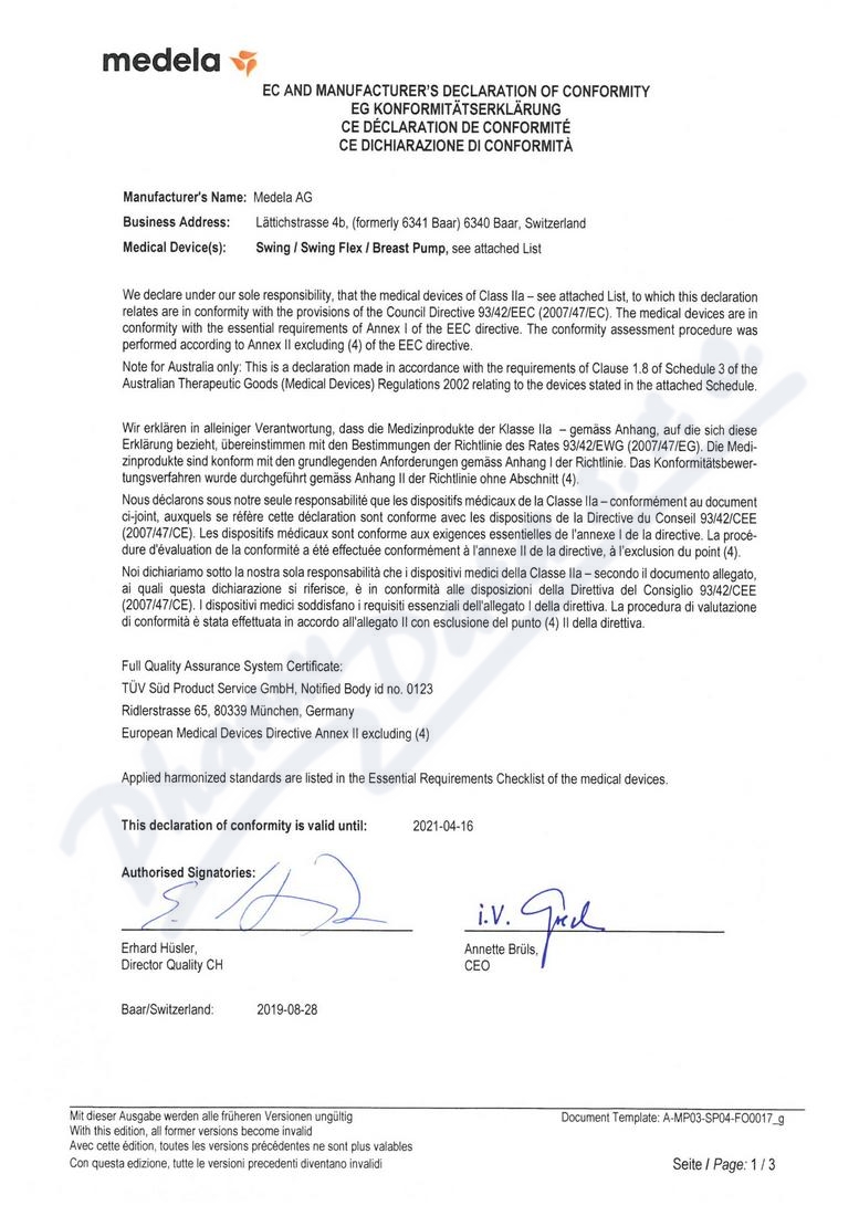 3 strany prohlášení o shodě: strana 1, strana 2, strana 3,