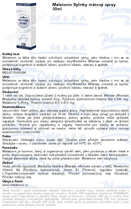 Melatonin Bylinky mátový spray 30ml