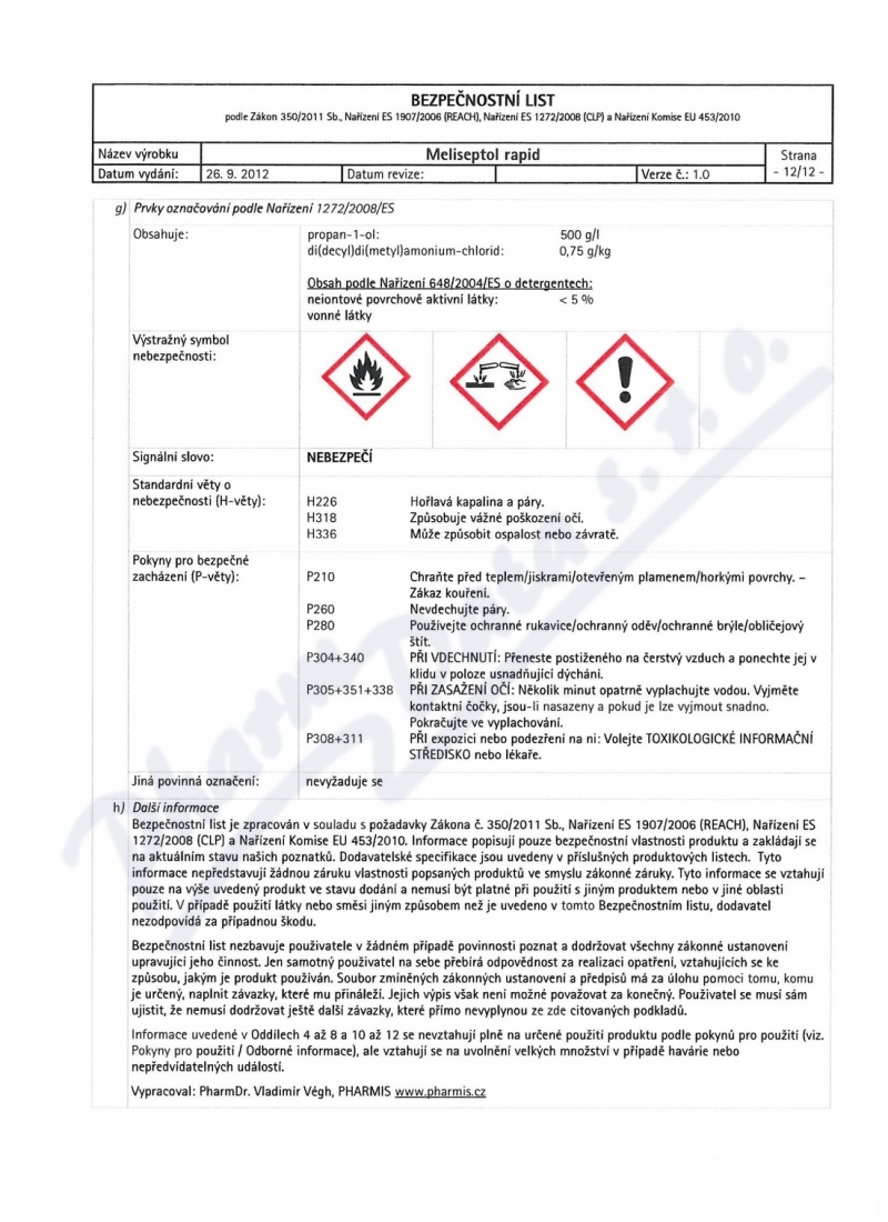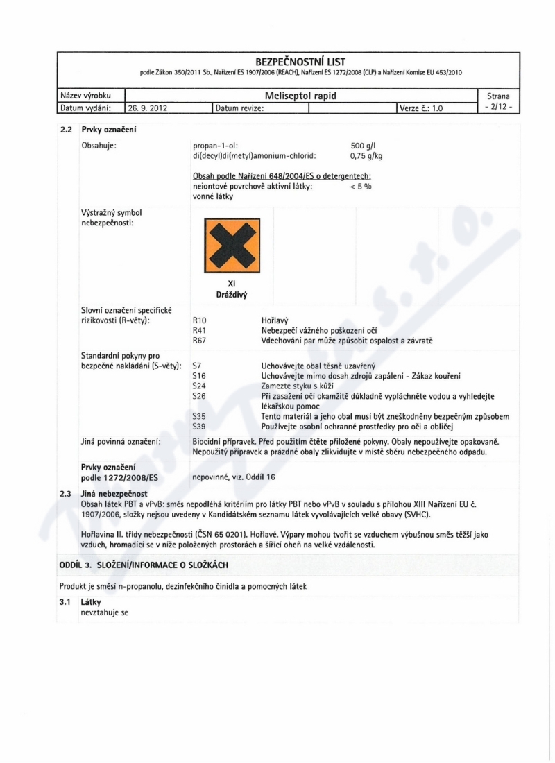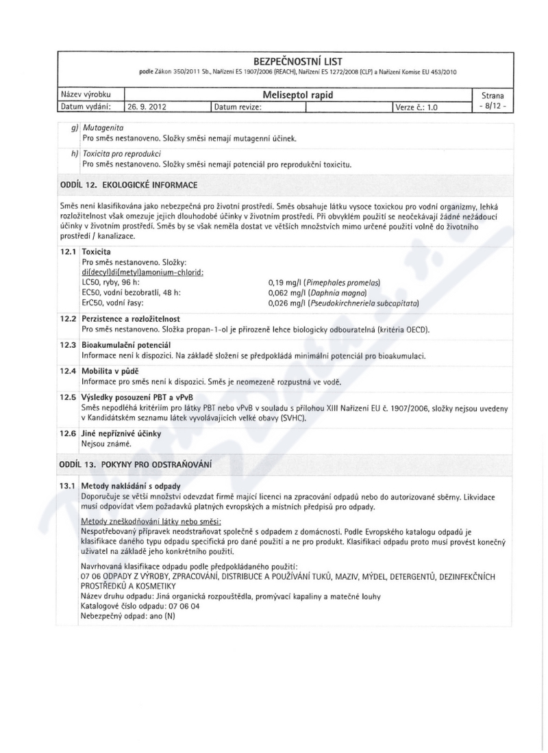 12 strany bezpečnostních listů: strana 1, strana 2, strana 3, strana 4, strana 5, strana 6, strana 7, strana 8, strana 9, strana 10, strana 11, strana 12,