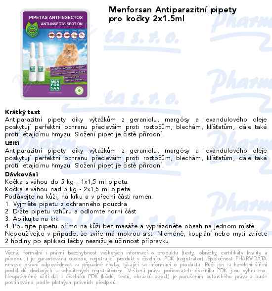 Menforsan Antiparazitní pipety pro kočky 2x1.5ml