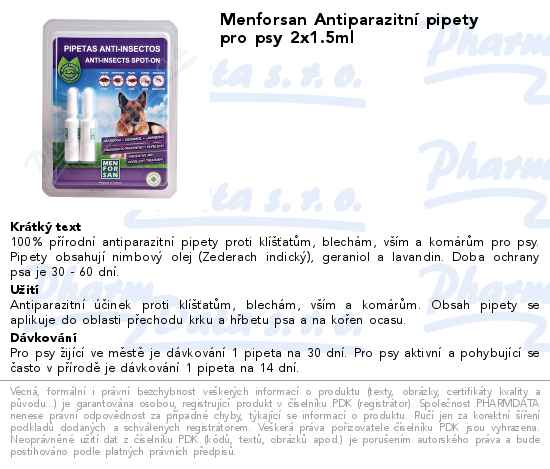 Menforsan Antiparazitní pipety pro psy 2x1.5ml