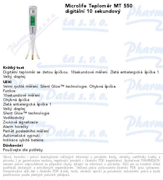 Microlife Teploměr MT 550 digitální 10 sekundový