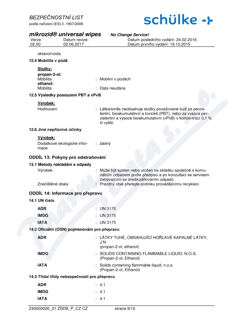 12 strany bezpečnostních listů: strana 1, strana 2, strana 3, strana 4, strana 5, strana 6, strana 7, strana 8, strana 9, strana 10, strana 11, strana 12,
