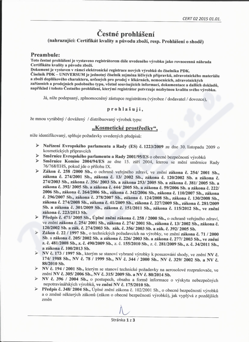 3 strany čestného prohlášení: strana 1, strana 2, strana 3,