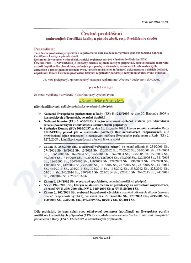 3 strany čestného prohlášení: strana 1, strana 2, strana 3,