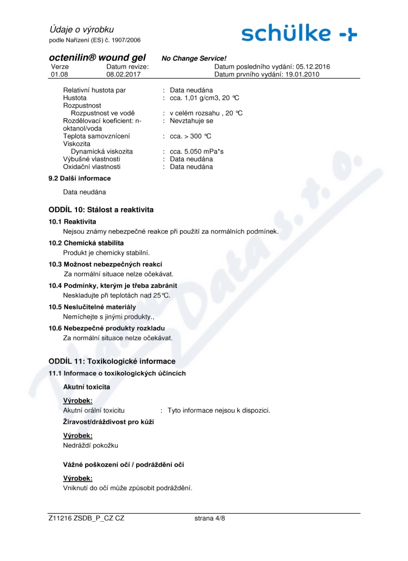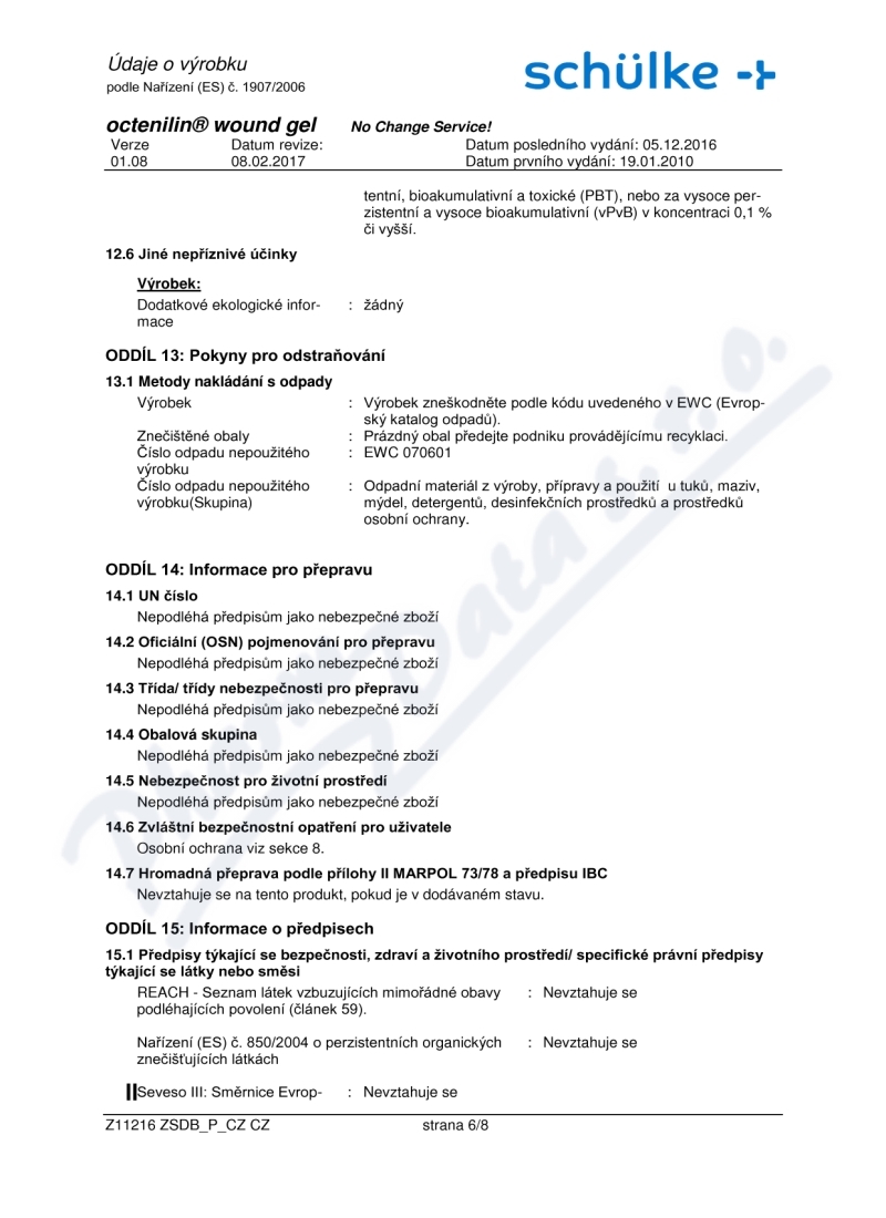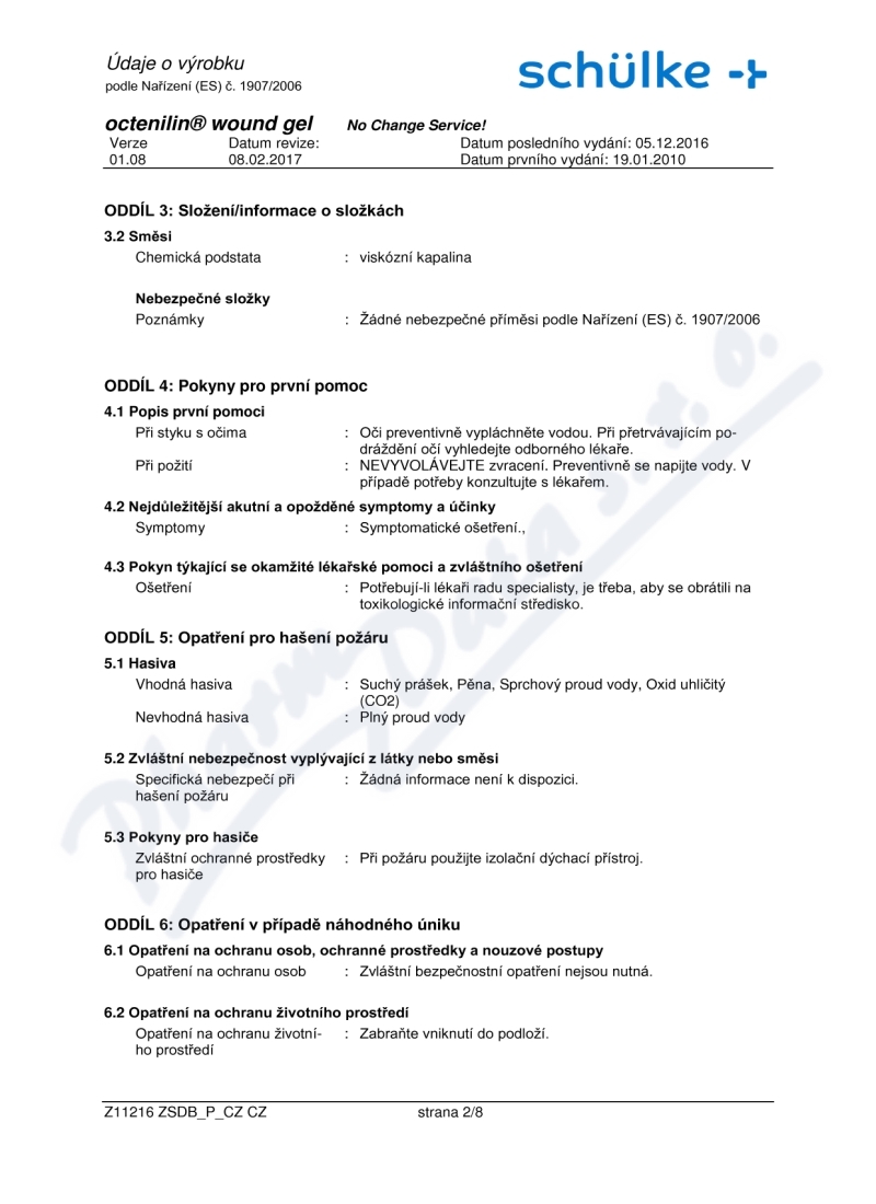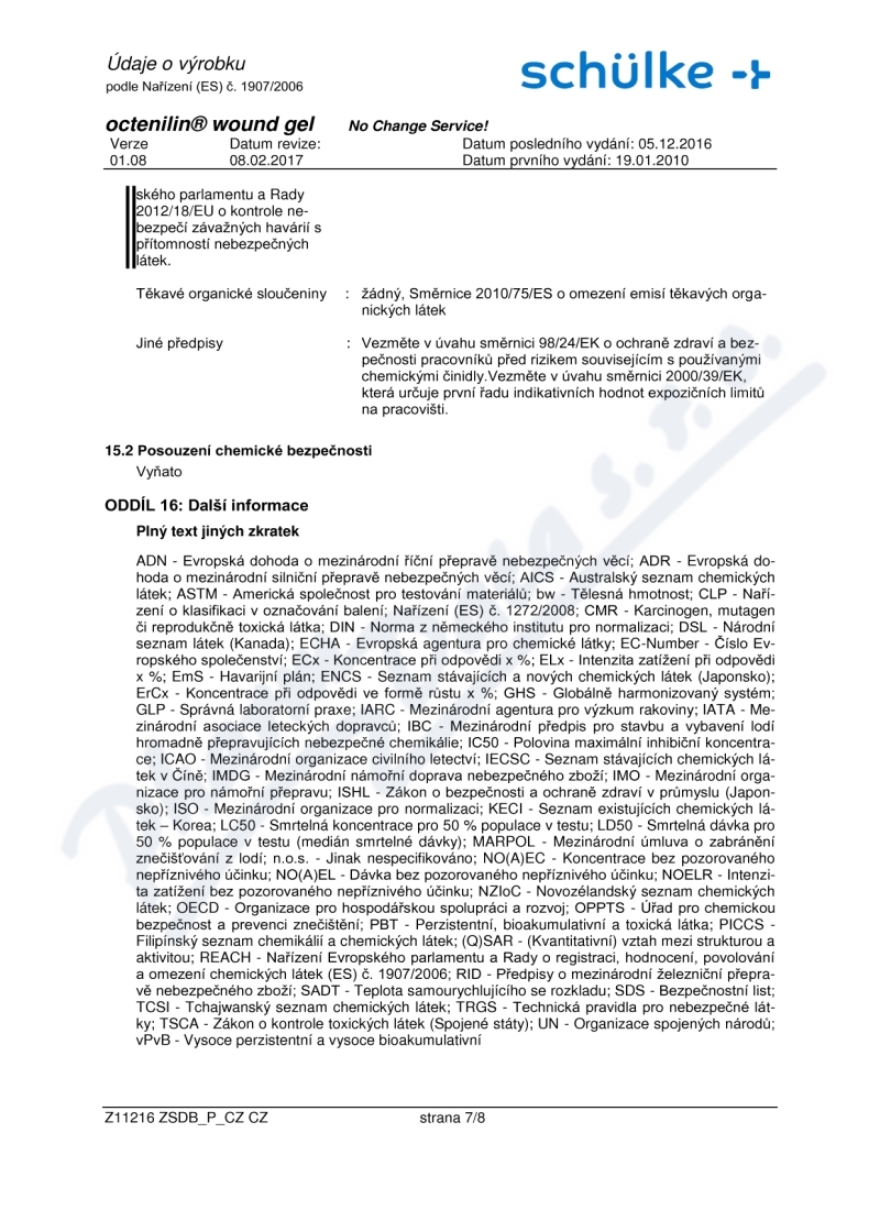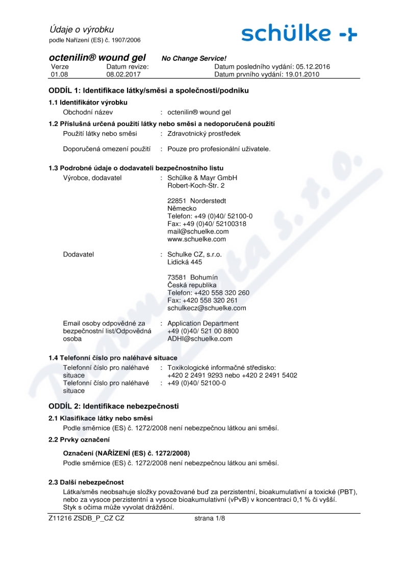 8 strany bezpečnostních listů: strana 1, strana 2, strana 3, strana 4, strana 5, strana 6, strana 7, strana 8,