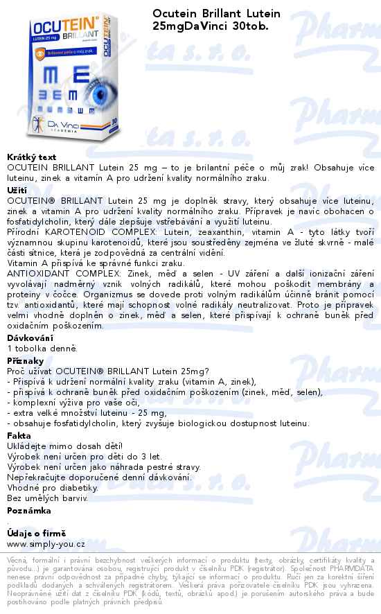 Ocutein Brillant Lutein 25mgDaVinci 30tob.