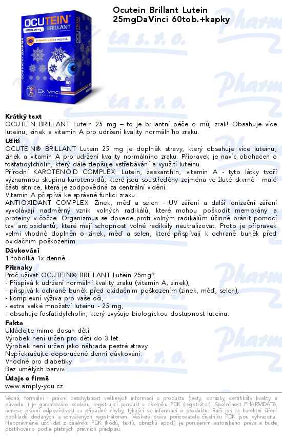 Ocutein Brillant Lutein 25mgDaVinci 60tob.+kapky