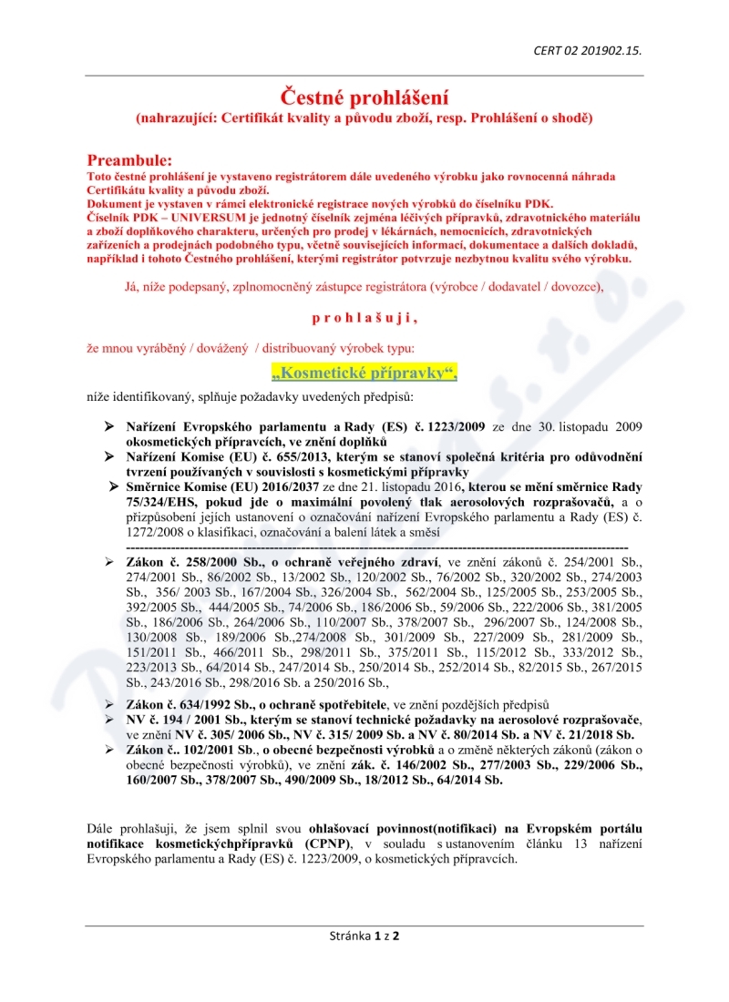 2 strany čestného prohlášení: strana 1, strana 2,