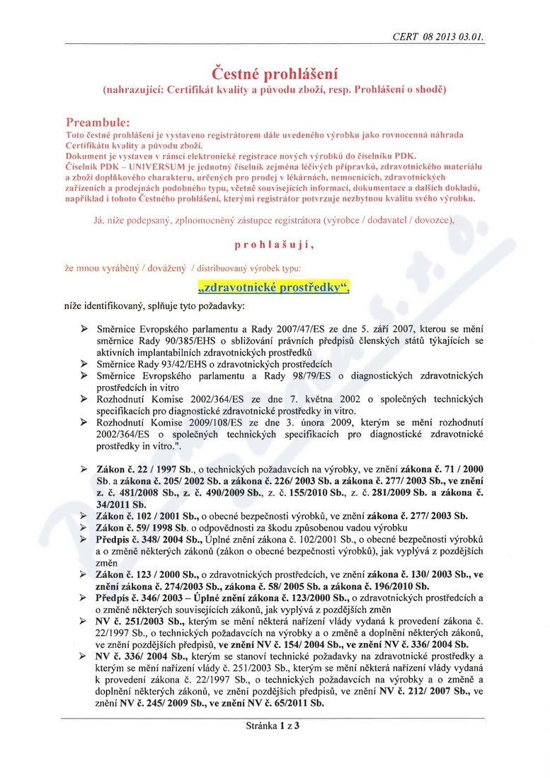 3 strany čestného prohlášení: strana 1, strana 2, strana 3,