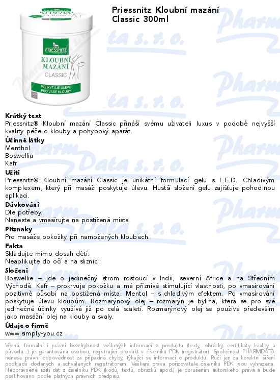 Priessnitz Kloubní mazání Classic 300ml