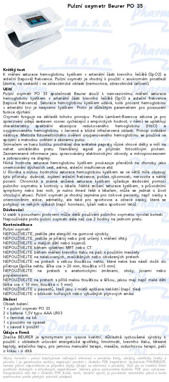 Pulzní oxymetr Beurer PO 35