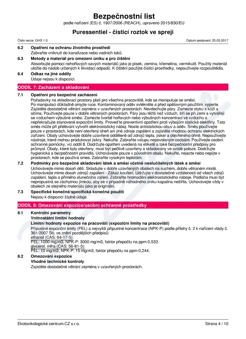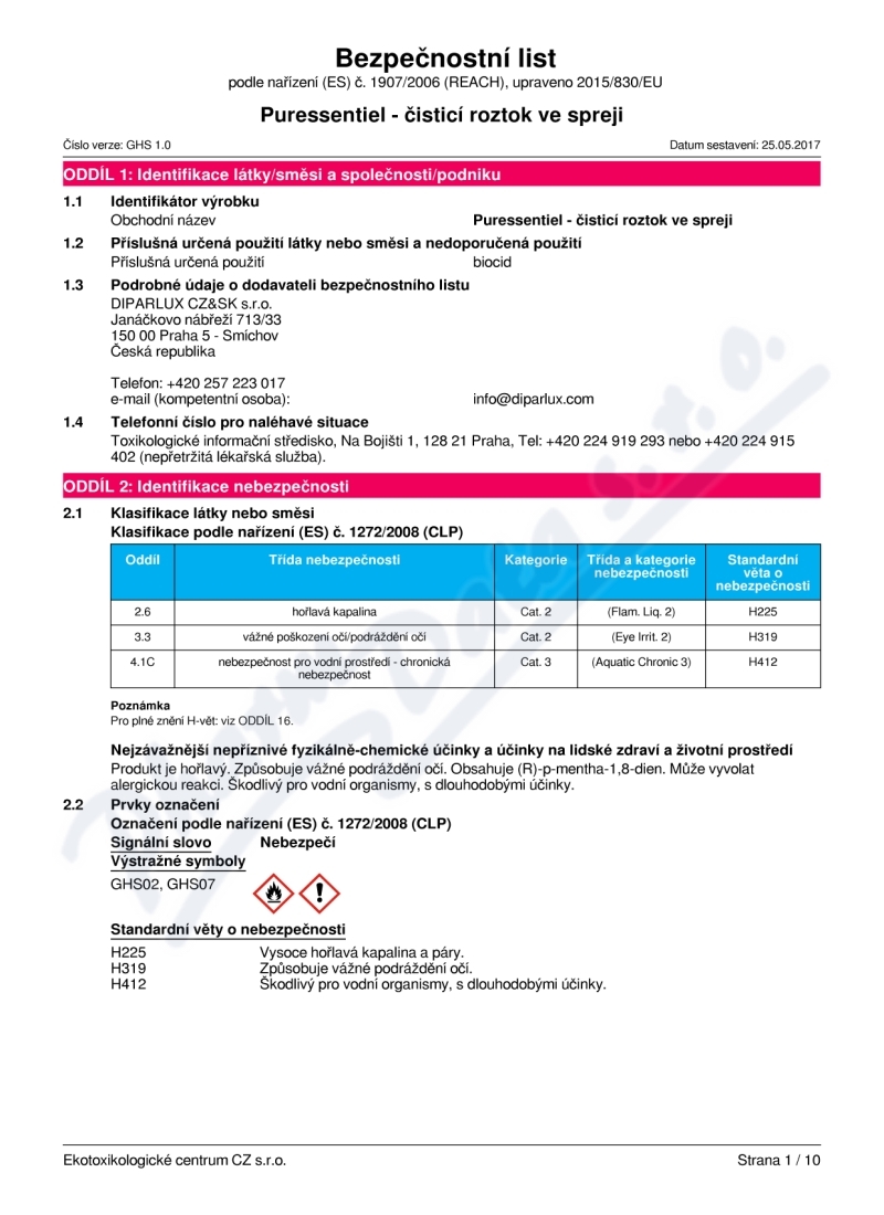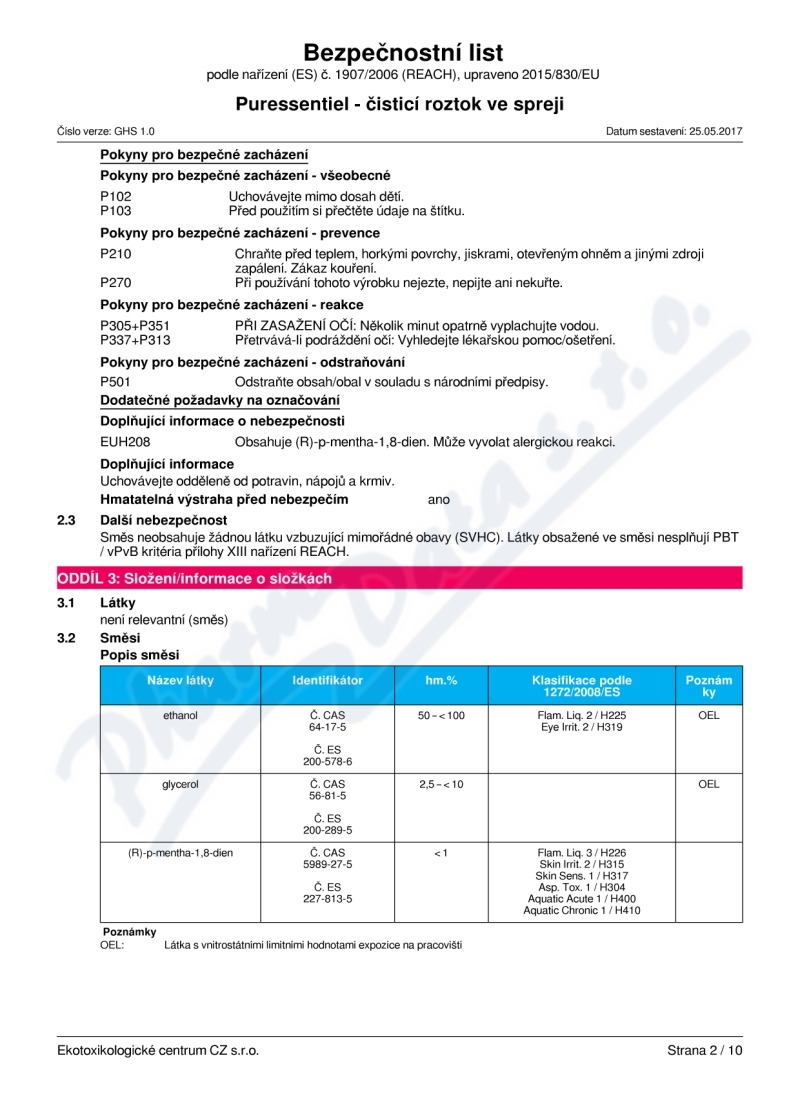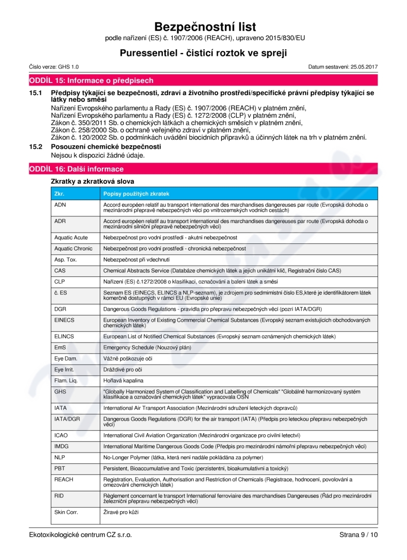 10 strany bezpečnostních listů: strana 1, strana 2, strana 3, strana 4, strana 5, strana 6, strana 7, strana 8, strana 9, strana 10,