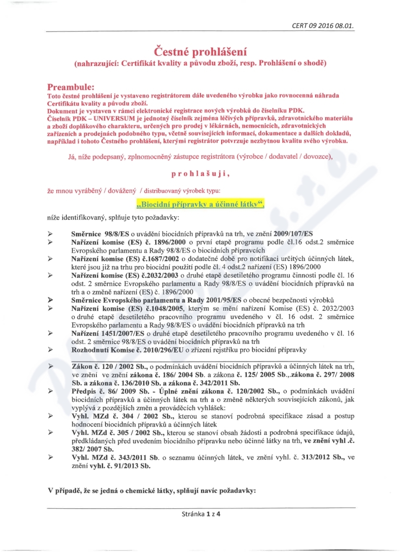 4 strany čestného prohlášení: strana 1, strana 2, strana 3, strana 4,