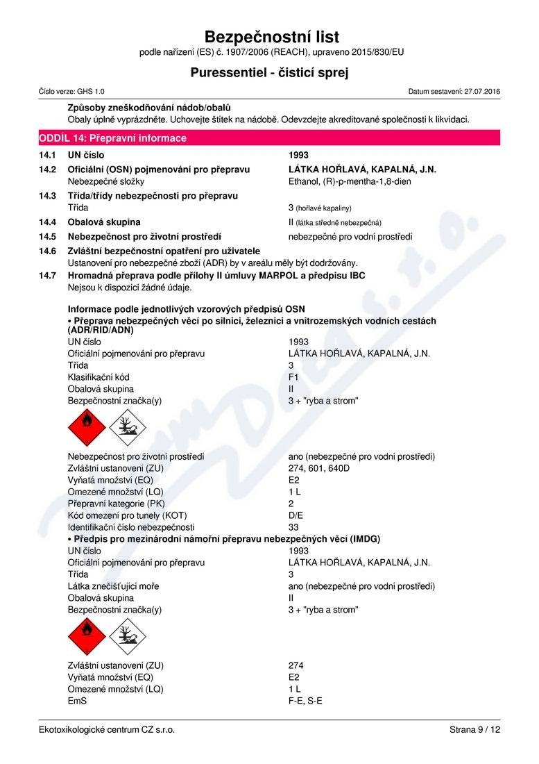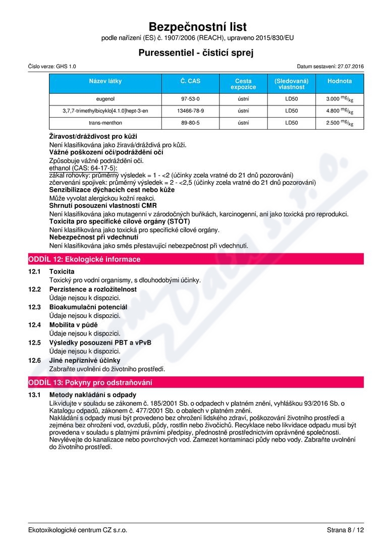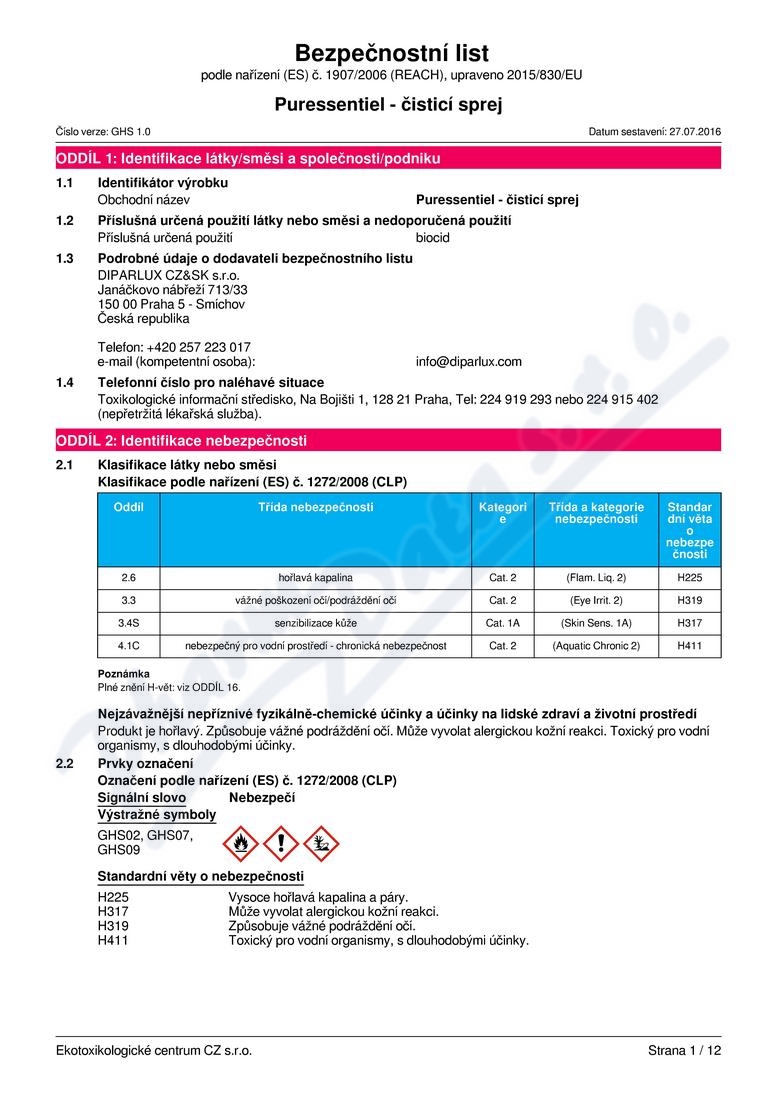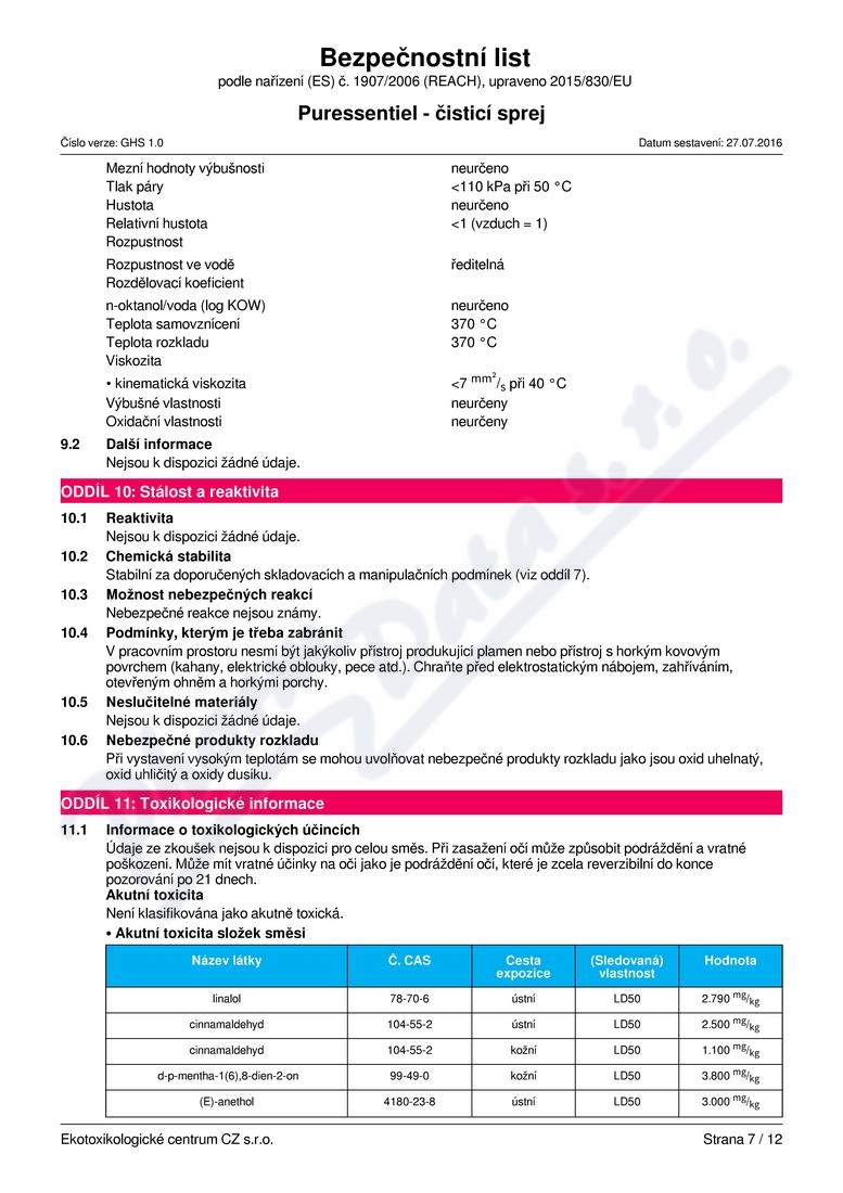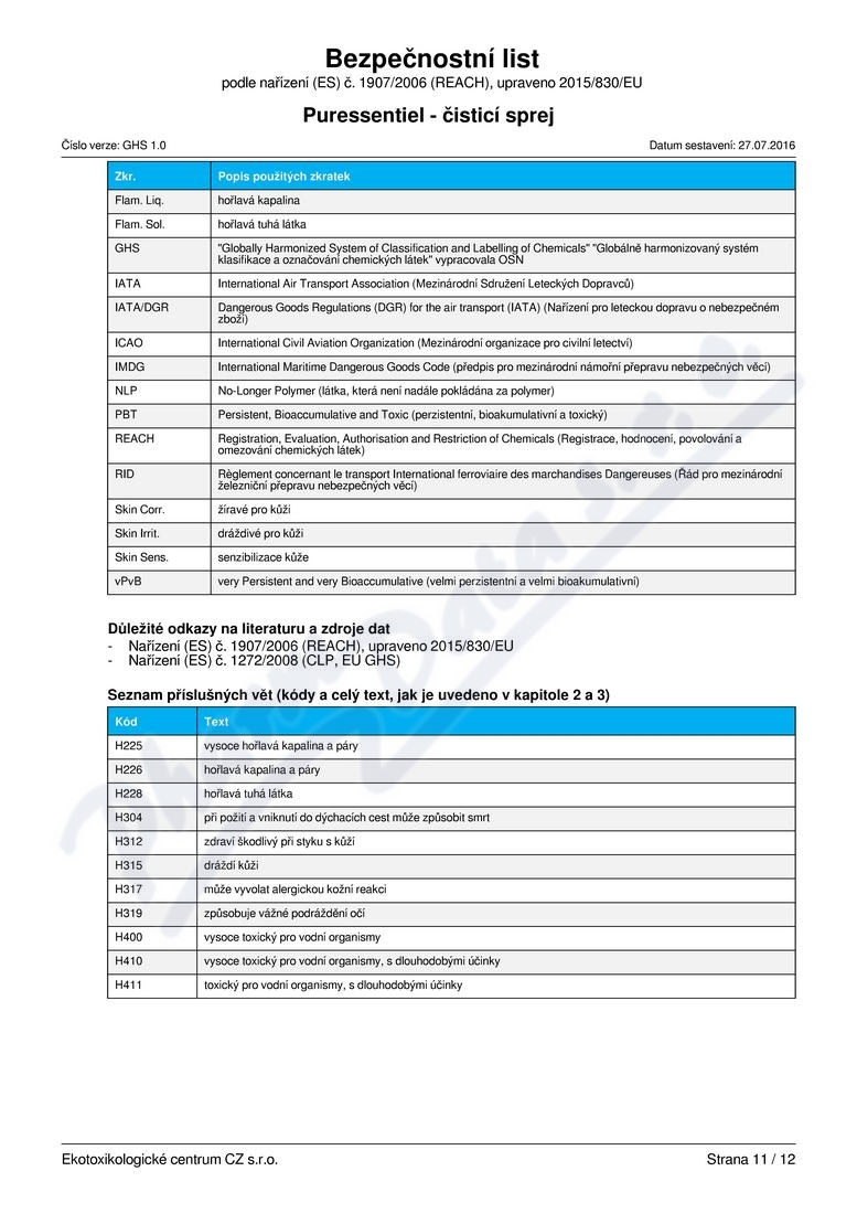 11 strany bezpečnostních listů: strana 1, strana 2, strana 3, strana 4, strana 5, strana 6, strana 7, strana 8, strana 9, strana 10, strana 11,