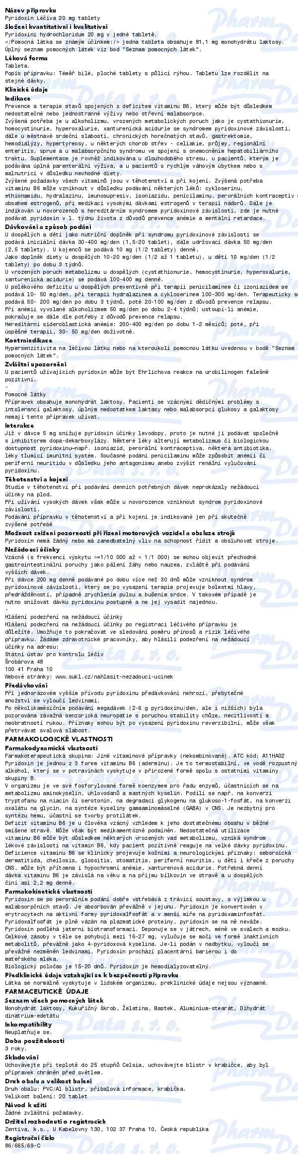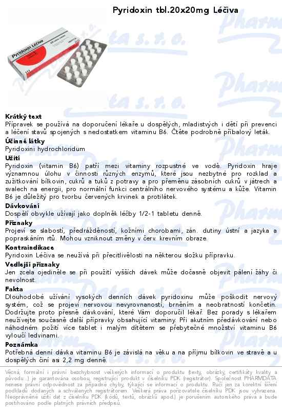 Obsahuje: PYRIDOXIN (VITAMIN B6)