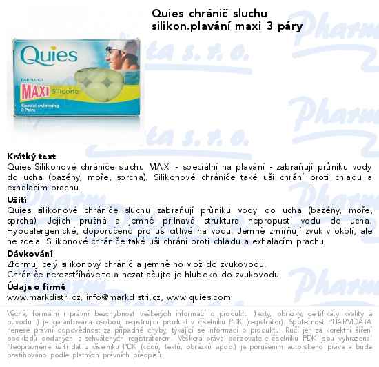 Quies chránič sluchu silikon.plavání maxi 3 páry