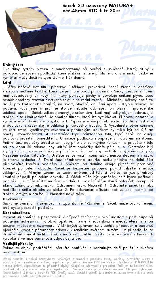 Sáček 2D uzavřený NATURA+ béž.45mm STD filtr 30ks