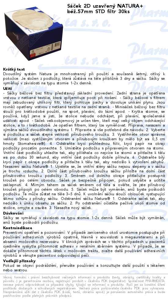 Sáček 2D uzavřený NATURA+ béž.57mm STD filtr 30ks