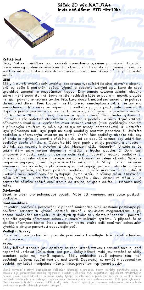 Sáček 2D výp.NATURA+ Invis.béž.45mm STD filtr10ks