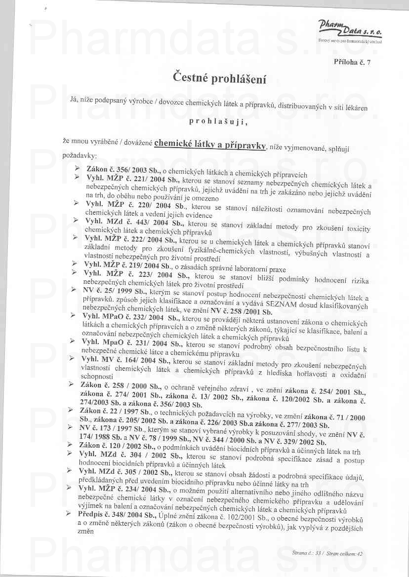 V našem e-shopu je možno objednat pouze volně prodejné zboží. Pokud by došlo k zobrazení sortimentu, který není ve volně prodejném režimu, nepovažuje se toto za nabídku k prodeji, ale jde pouze o informaci o ceně a tudíž nebude obchodováno.