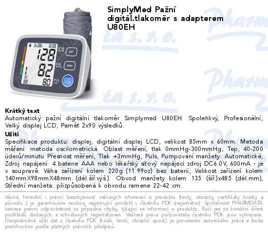 SimplyMed Pažní digitál.tlakoměr s adapterem U80EH