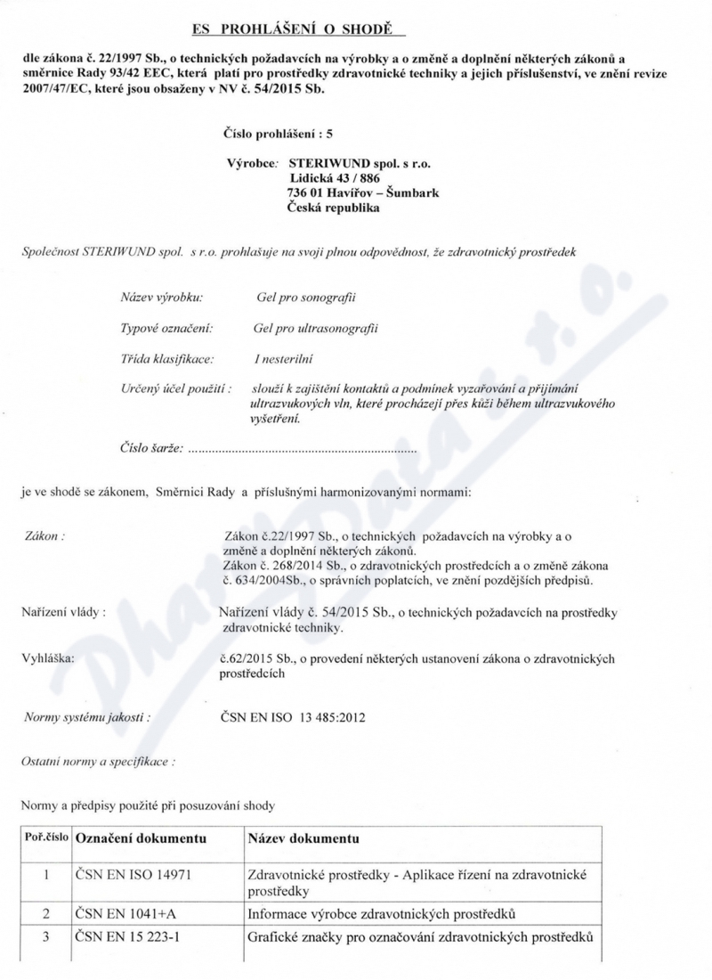 2 strany prohlášení o shodě: strana 1, strana 2,