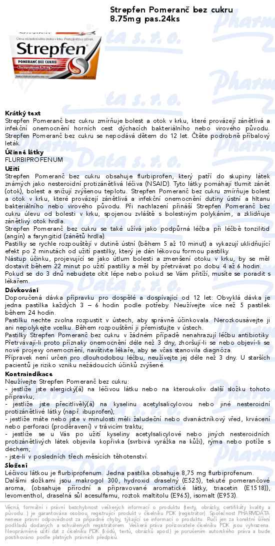 Strepfen Pomeranč bez cukru 8.75mg pas.24ks