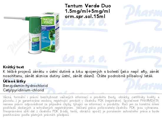 Tantum Verde Duo 1.5mg/ml+5mg/ml orm.spr.sol.15ml