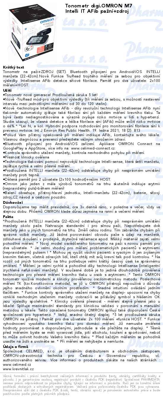 Tonometr digi.OMRON M7 Intelli IT AFib pažní+zdroj