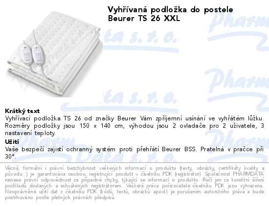Vyhřívaná podložka do postele Beurer TS 26 XXL