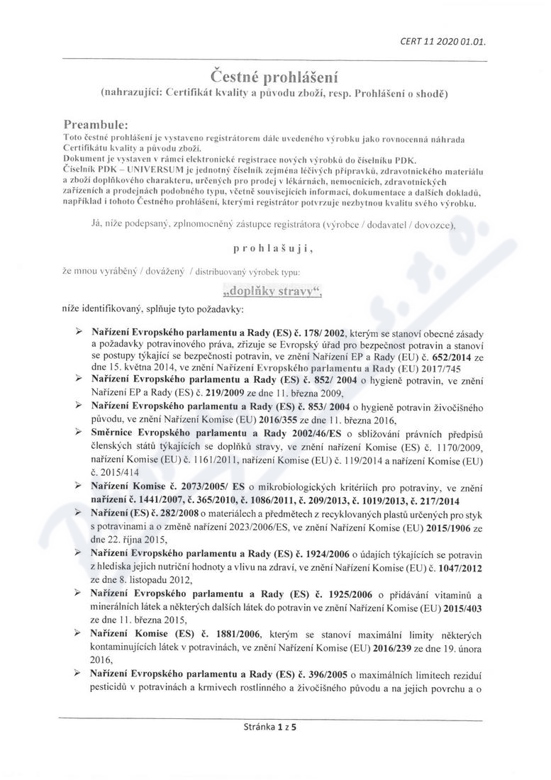 5 strany čestného prohlášení: strana 1, strana 2, strana 3, strana 4, strana 5,