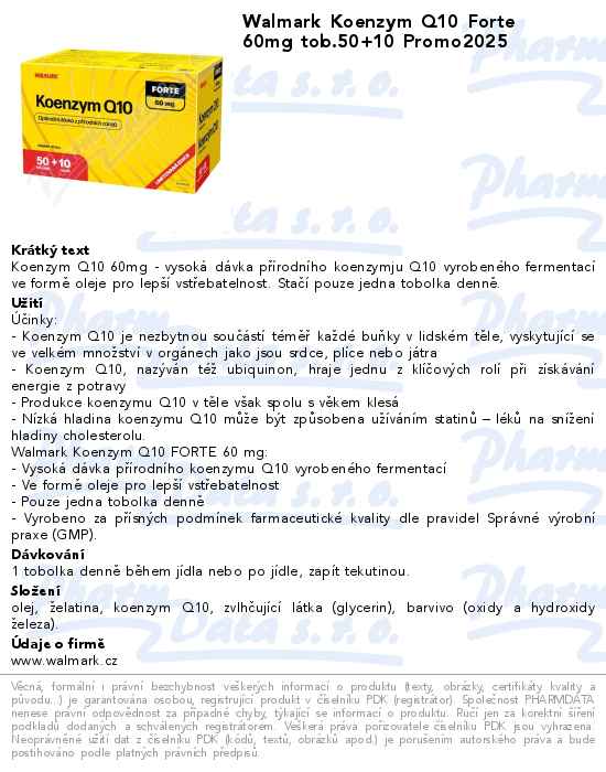 Walmark Koenzym Q10 Forte 60mg tob.50+10 Promo2025