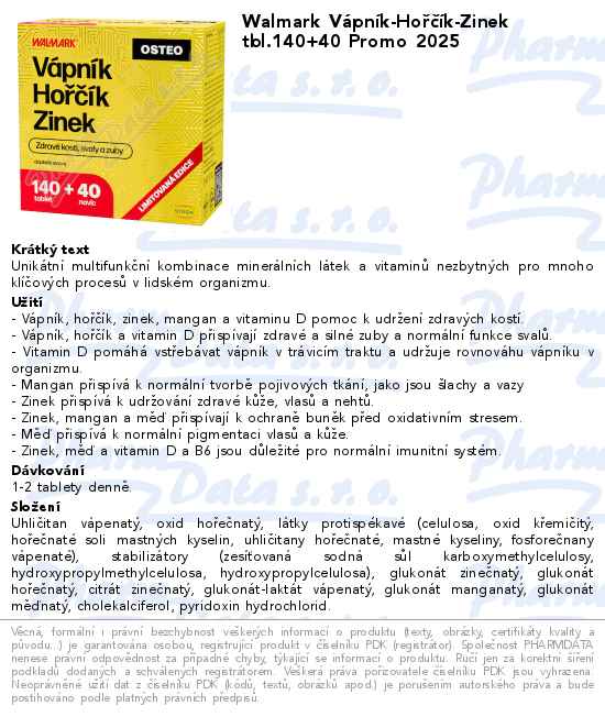 Walmark Vápník-Hořčík-Zinek tbl.140+40 Promo 2024