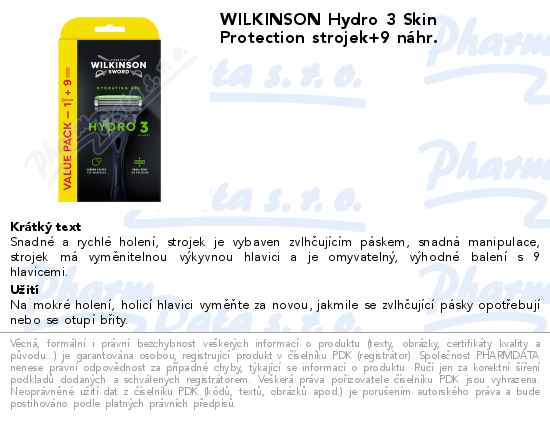 WILKINSON Hydro 3 Skin Protection strojek+9 náhr.