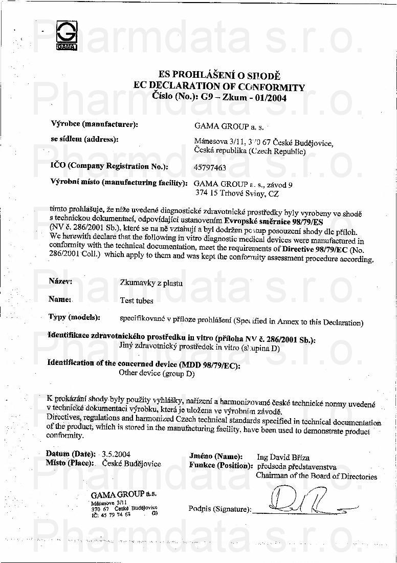 3 strany prohlášení o shodě: strana 1, strana 2, strana 3,