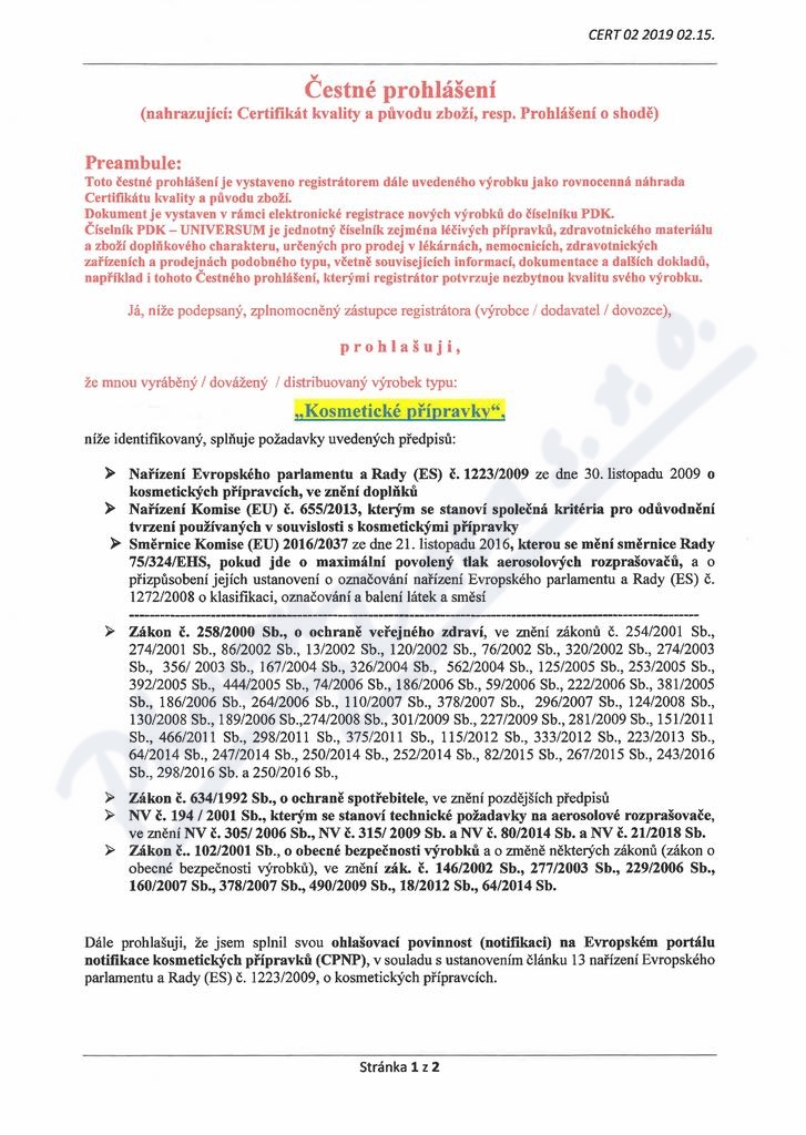 2 strany čestného prohlášení: strana 1, strana 2,