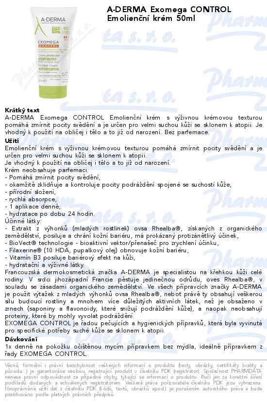 A-DERMA Exomega CONTROL Emolienční krém 50ml