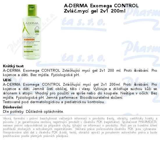 A-DERMA Exomega CONTROL Zvláč.mycí gel 2v1 200ml