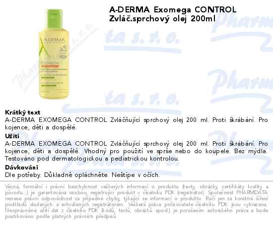 A-DERMA Exomega CONTROL Zvláč.sprchový olej 200ml