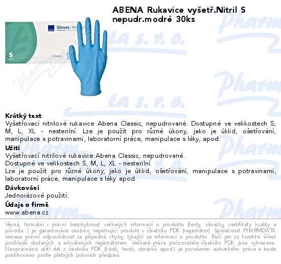 ABENA Rukavice vyšetř.Nitril S nepudr.modré 30ks