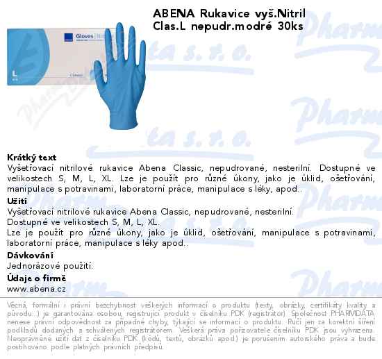 ABENA Rukavice vyš.Nitril Clas.L nepudr.modré 30ks