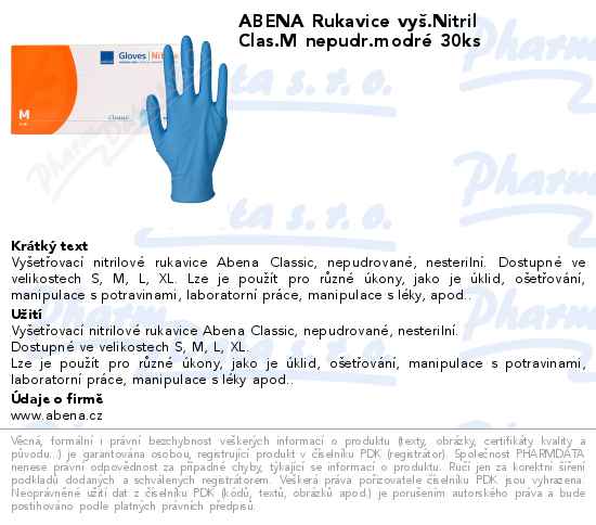 ABENA Rukavice vyš.Nitril Clas.M nepudr.modré 30ks