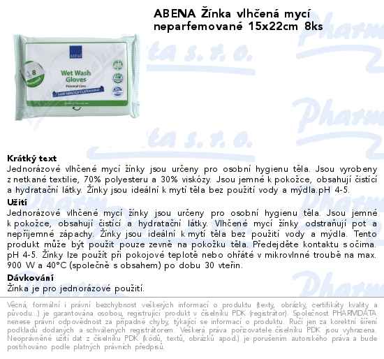 ABENA Žínka vlhčená mycí neparfemované 15x22cm 8ks